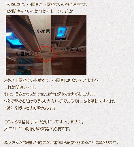 あなたの施工の杜撰さが原因で、人命を失うことも有り得るという事を知るべきです。