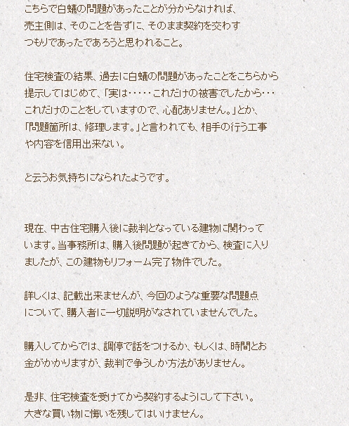 検査依頼主は、この建物の購入を取りやめなさいましたが、その理由は
