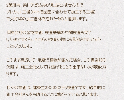 が出されていますが、ファイアーストップが施工されていませんでした。